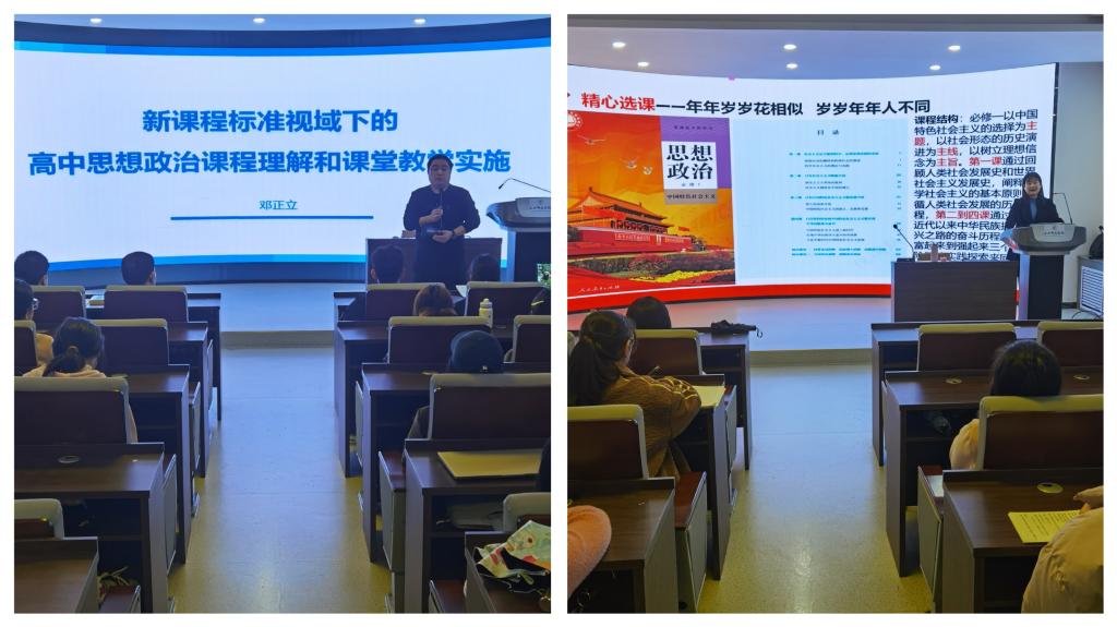 10月25日至26日,明升MS88体育登录邀请西安市教科院高中思政课教研员邓正立,西安市经开区第一中学教师尚姝君在红色讲堂分别为学院师生作题为《新课程标准下的高中思想政治课程理解和课堂教学实践》的学术报告和题为《一节优质课的前世今生》的示范教研。学院教师、研究生、本科生共100余人参加。