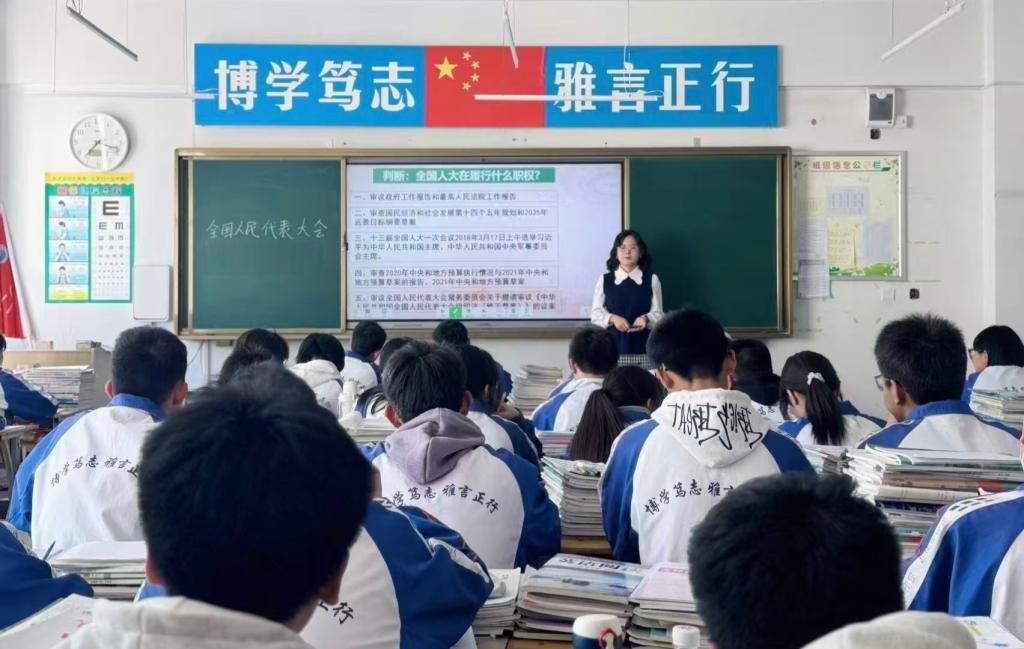 在天水市第一中学(本部)的研究生除了完成每天的听课任务以外,还积极跟课间操,参与班主任例会和主题班会,跟随指导老师学习课堂与班级管理方法。在天水市第一中学(麦积校区)的研究生极参加高一年级举办的“聚焦两会,奋进中国”手抄报比赛活动,包括作品的评比、优秀作品展的制作,颁奖活动现场的布置以及活动公众号的撰写。在天水市第二中学的研究生积极参与教学实践,精心设计教学方案,运用丰富的案例和多样化的教学方法,引导学生思考和讨论,激发学生的学习兴趣。在天水市逸夫实验中学的研究生深入课堂学习观摩,参与“天水市大中小学思政课一体化建设”研讨会。除此之外,他们还参加了观课议课的实践培训,学习了如何有效地观察和评价课堂教学,提升了教学反思能力。在陇西文峰中学的研究生,在认真听课,精心备课的基础上积极投身实践教学;参加陇西县教育局组织召开的“兰州大学·陇西县大中小学思想政治教育一体化建设工作座谈会”,会前还参观了陇西大思政课教育展厅;在政治教研组绕公开课展开深入探讨,各抒己见,从不同角度进行了全面且细致的点评。