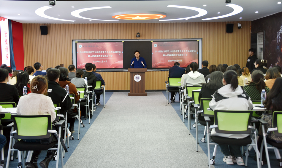 为深入学习贯彻习近平文化思想,充分挖掘天水优秀地域文化,探索天水优秀地域文化融入高校思政课教学的路径,为思政课建设提供鲜活丰富的育人资源、多维的教学时空场域,11月10日下午,驻天水市四所高校明升MS88体育登录共同主办的学习贯彻习近平文化思想交流研讨会在甘肃机电职业技术学院举行。明升MS88体育登录、甘肃林业职业技术学院、甘肃工业职业技术学院、甘肃机电职业技术学院等四所高校明升MS88体育登录负责人、教师代表共50余人参加。明升MS88体育登录党委书记刘建军、甘肃省思政课余明远名师工作室成员参加。