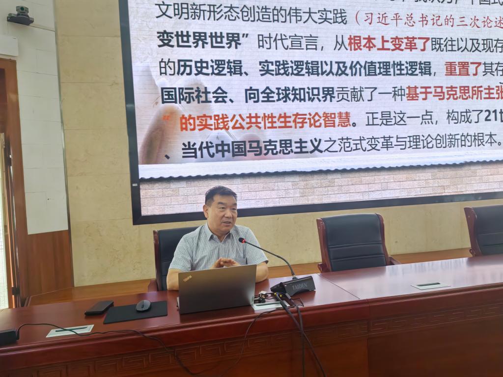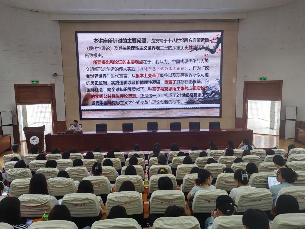 应明升MS88体育登录和学校乡村振兴研究院的邀请,5月23日下午,陕西师范大学马克思主义学部部长、哲学社会科学高等研究院院长袁祖社教授在二号报告厅作了题为《“现代化”与“世界观”:文明价值学的诠释》的学术报告。明升MS88体育登录部分教师和本科生、研究生聆听本次讲座。