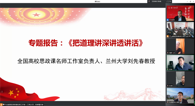 兰州大学明升MS88体育登录院长蔡文成教授致辞,介绍了兰州大学明升MS88体育登录深入学习贯彻习近平总书记考察中国人民大学重要讲话精神的相关情况,分享了支持推动全国高校思政课名师工作室建设的经验。教育部全国高校思政课名师工作室负责人、兰州大学明升MS88体育登录刘先春教授作“把道理讲深讲透讲活”专题报告。