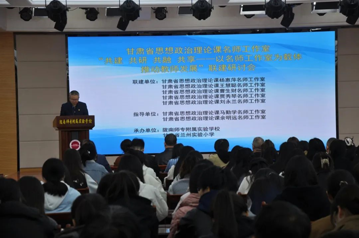 陇南师专党委书记张弢出席开幕式并致辞,他指出,名师工作室联建研讨活动为推动甘肃省思政理论课名师工作室大中小学一体化建设搭建了良好交流平台,是对“大思政”教育教学融合发展要求的具体实践,发挥着重要的示范引领、辐射带动作用。同时,他提出了三点期望:一是要做到知行合一,铸魂育人;二是要讲好故事,启智润心;三是要一体推进,形成合力。