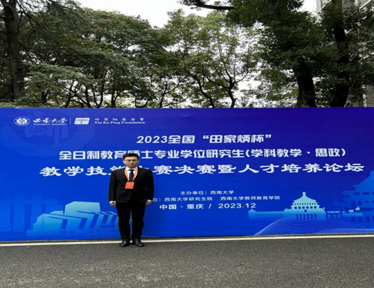 2023年12月1日至12月3日,2023年全国“田家炳杯”全日制教育硕士专业学位研究生学科教学(思政)教学技能大赛决赛在西南大学举行。 全国75所院校的188名选手入围决赛,明升MS88体育登录学科教学(思政)专业3名研究生进入决赛。名师工作室指导的选手2022级研究生席乐获得优秀教学设计奖。2022年名师工作室指导的选手2021级研究生王文君也获得此等奖项。