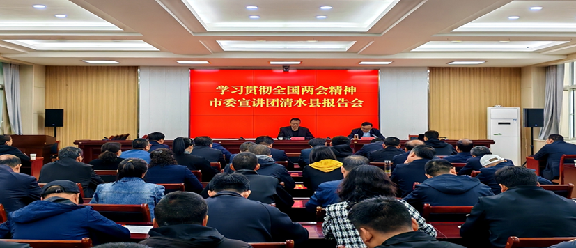 4月29日,学习贯彻全国“两会”精神市委讲师团清水县报告会举行。市委宣讲团成员、明升MS88体育登录副院长、教授余明远做专题宣讲,县委常委、政法委书记张涛涛出席会议,各乡镇、各部门单位干部80余人聆听宣讲。