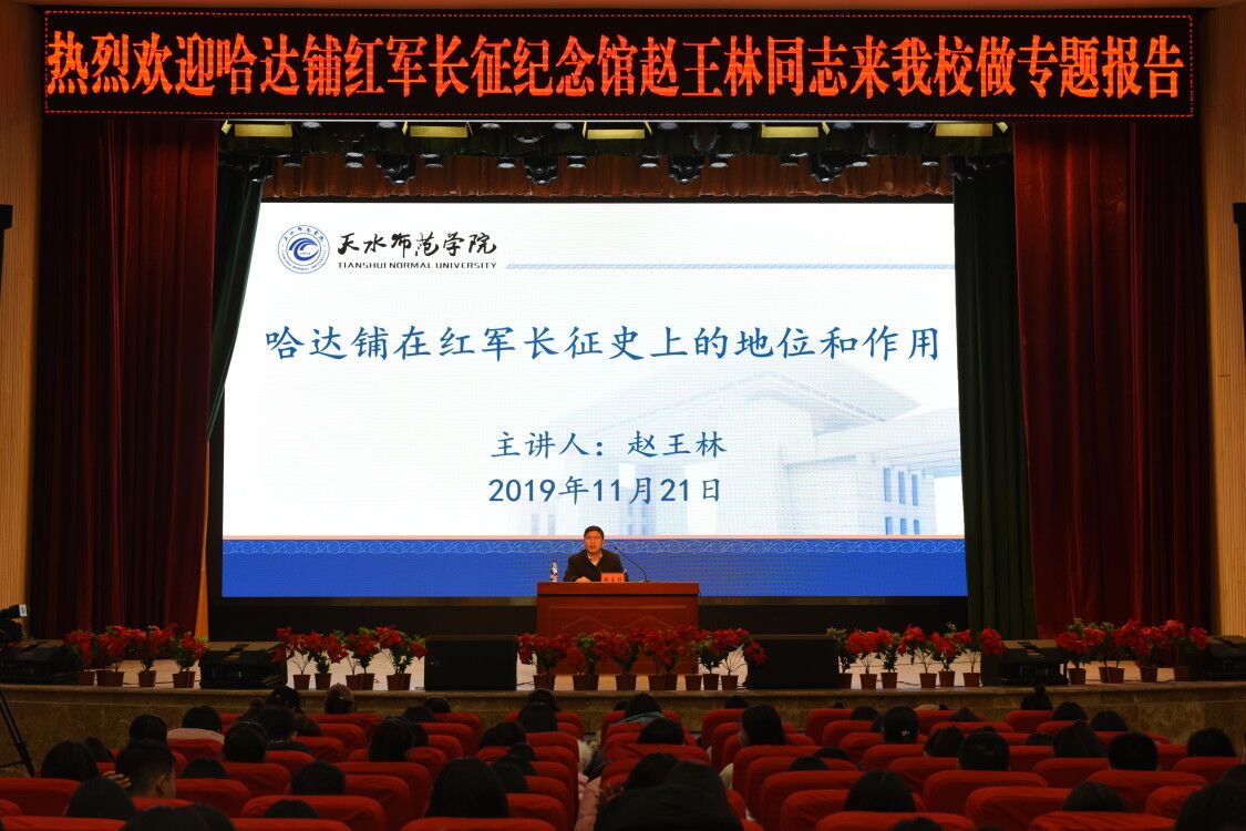 11月21日下午,应陇东南红色文化研究院邀请,哈达铺红军长征纪念馆赵王林主任在礼堂作了题为《哈达铺在红军长征历史上的地位和作用》的红色文化专题报告,报告会由陇东南红色文化研究院和校团委共同举办,明升MS88体育登录副院长刘建军主持,学校近500名师生参加报告会。