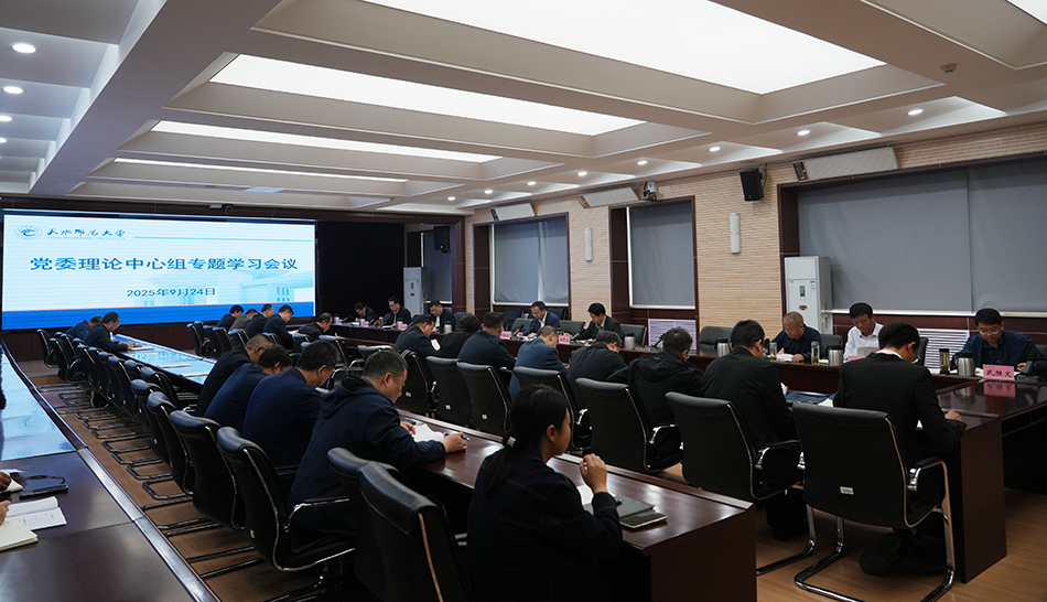 2025年9月24日,学校以“坚定历史自信、增强历史主动,从党的奋斗史中汲取建设区域高水平综合性师范大学的智慧与力量”为主题召开党委理论学习中心组(扩大)第九次专题学习会议。在校党委常委,党委理论学习中心组成员,各职能处室负责人参加。会议由党委书记刘振奎主持。